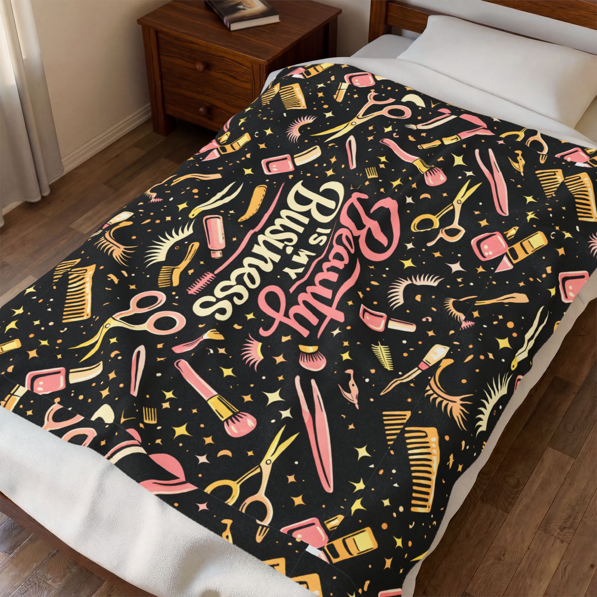 Beauty Is My Business Velveteen Plush Blanket — Salon Tools Pattern Throw for Makeup Artists & Hairstylists